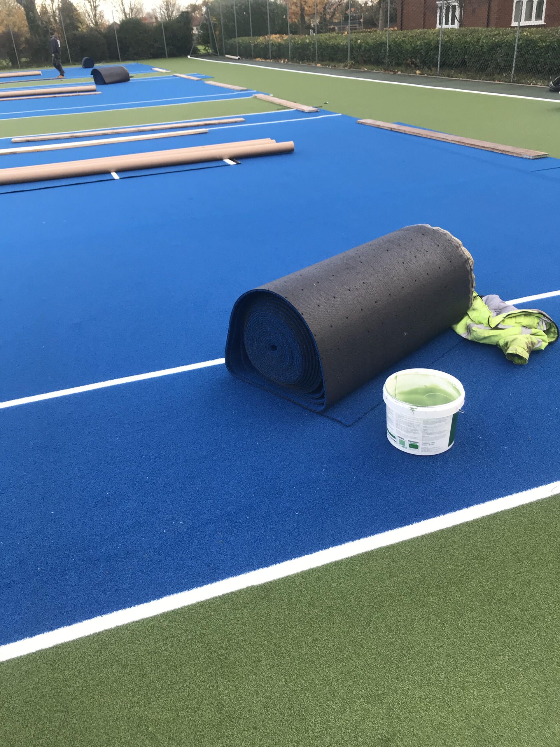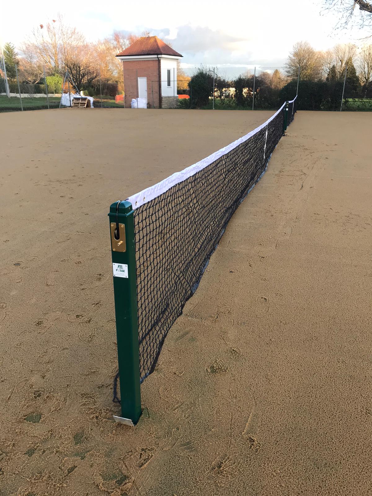 Following a poll of members, the Club chose to resurface with artificial grass, a surface which has proved very popular. On such a surface, the speed and bounce of that ball can be varied, so to give players a choice, a different setting to courts 1-3 was chosen. To give the most modern look (and the most reliable line calls!) , the new courts will (once the sand settles in) be blue with a green surround.